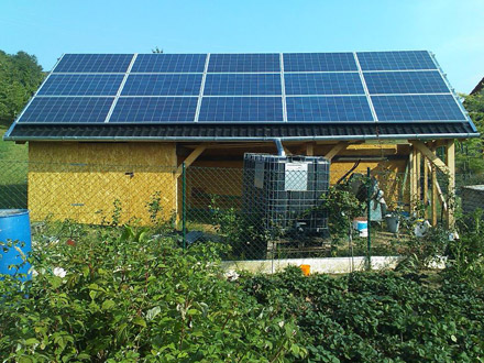 Velikost instalace - 4,48 kWpPoužité panely a měnič - Suntech 280, SolarMax 4200