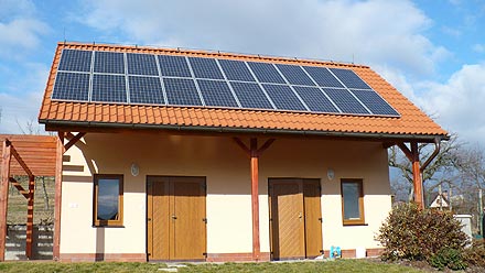 Velikost instalace - 3,92 kWpPoužité panely a měnič - Suntech 280, SolarMax 4200